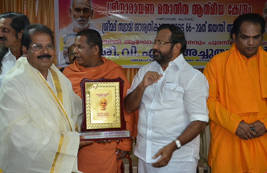 SEVANA SREE PURASKARAM-2014 Presented by Swami Gururatna Gnantapasi (Santhigiri Ashramam)